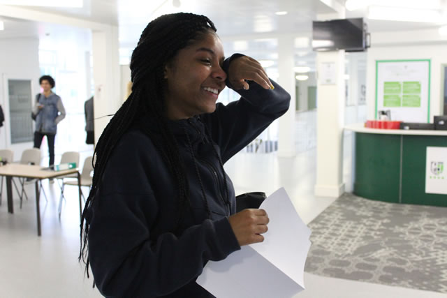 There were many tears of happiness this morning as students eagerly opened their results envelopes. Maia Drummond, who achieved A* A* A in English Literature, Sociology and History, and will go on to study English at Kings, said “I cannot believe it! I’m so happy that all this hard work paid off. I want to thank all my teachers, I have really prospered at Ark Putney Academy, especially through the creative side of the school – I played Macbeth, and Romeo – but not in the same play!”.