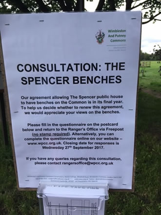 The benches are not just for use of customers of The Spencer; they can be used by any visitors to the Common. The Spencer pays the Conservators for the right to have benches, providing "valuable income for the management of the Common". The licence for the benches is due for renewal the WPCC want to know your views.