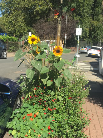 Festing Road the Putney home of the cartoon character Mr Benn has another claim to fame. Its sun and other flowers. Seven years of guerrilla gardening have come gloriously to life in recent weeks.