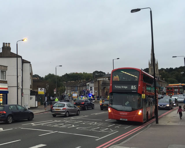 "Three police cars blocking top end of Medfield at Putney Heath, another three or four at the bottom end. Tape everywhere. I think two ambulances, two unmarked cars and another couple of police cars in the middle. Helicopter that came left with no-one."