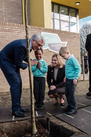 Justine Greening MP and Steve Chalke (founder of Oasis charity) help plant tree