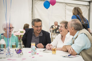 Cllr Ravi Govindia enjoys a joke in the Cream Tea marquee