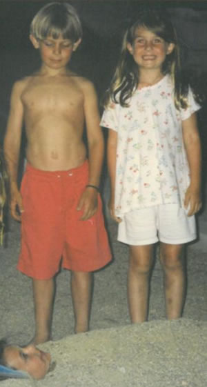 Ed and Heidi Savitt are a happily married couple living in Putney but their romance has followed a long path with strange coincidences along the way. Having graduated and moved south to London to work Ed eventually proposed and it was when the couple had a meal with their parents that they discovered that their 'relationship' started decades before when, as young children, they had met in Bodrum, Turkey. An innocent comment from Heidi's mother alerted them to the strange coincidence. She said, 'When you were on holiday in Turkey and you were little you had a little boyfriend called Ed.' Ed's parents confirmed that their family had also been in Bodrum that year. When Heidi's mother returned home she dug out the family snaps and posted them to Heidi and yes 'little Ed' was her son. The couple recreated the image Heidi's mum had found for their wedding invites - posing in virtually identical outfits, Heidi in a black swimming costume and Ed in a fish-patterned tee-shirt and checked shorts (see image at top of article).