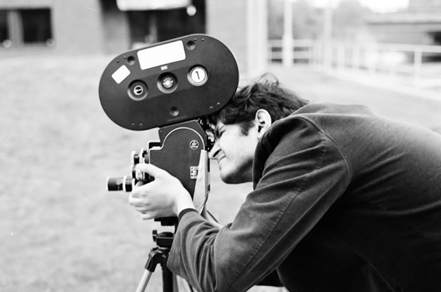 Shyam Doonga behind his vintage Super 16mm film camera