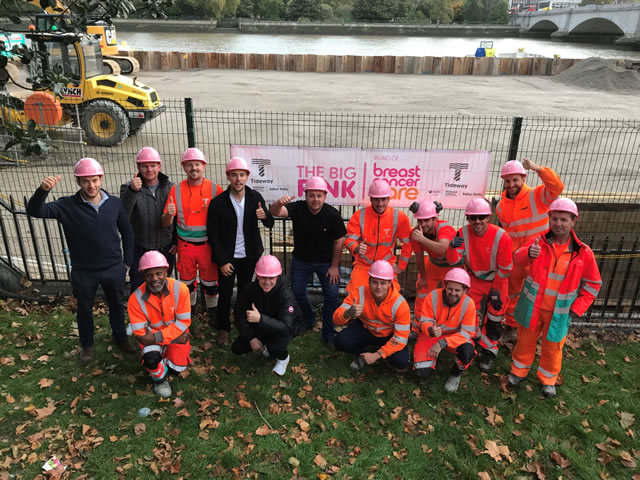 More than 150 Members of the Tideway construction team in West London donned pink hard hats for the cause, expecting to raise at least £1,000.
