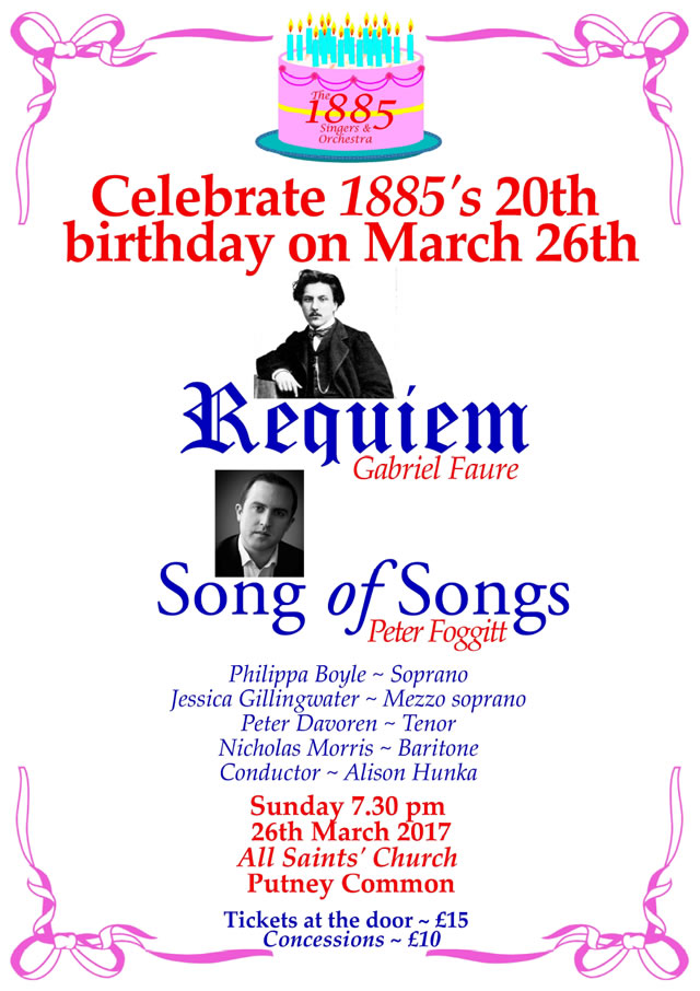 A World Premiere is being performed in All Saints Church Putney Common on 26th March to celebrate the 20th anniversary of the 1885 Singers.