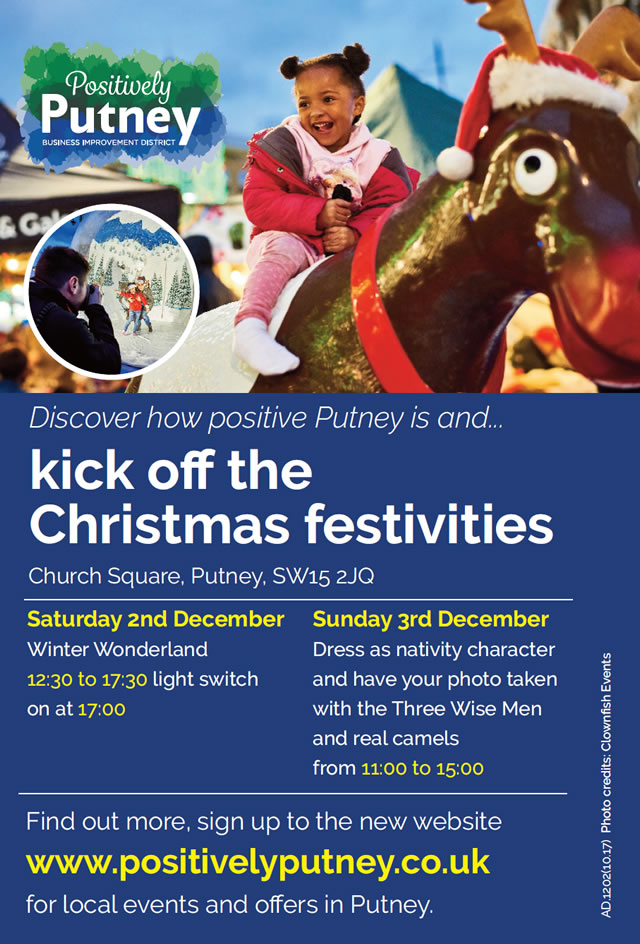 Join Positively Putney this Christmas season with free fun entertainment in Church Square over the weekend of 2nd and 3rd December 2017.