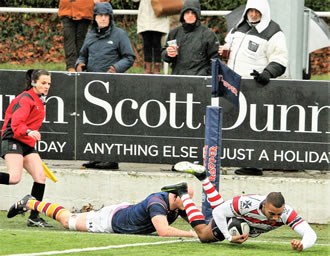 Moments later though, Fylde got off the mark with a try from Harlan Corrie who was the most alert player when an over-thrown lineout bobbled around on the turf.