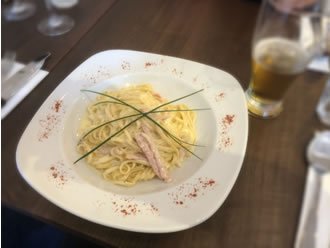 The carbonara (£8.50) comes with your choice of pasta - our friend chose linguine. Rich and creamy with plenty of bacon and topped with their home grown chives - "delicious!".