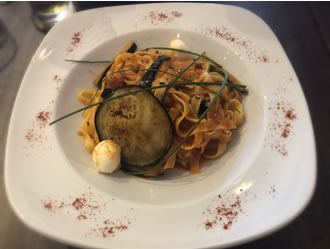 We were given a delicious free (opening week offer) garlic bread with balsamic vinegar and oil dip whilst we waited for your lunch dishes. The vegetarian tagliatelle alle melanzane (£9.95) was delicious - a rich in flavour yet light tomato sauce with basil and grilled aubergine sauce had mozzarella balls which slowly melted in to the sauce and pasta as I ate.