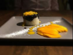 We were tempted by the dessert menu which once again offers a Thai take on some British & European puddings: Banoffee pie with fried bananas; rice pudding - but this one is sticky wild rice with mango salsa; and creme brulee with a delicate flavour of kaffir lime; plus Far Eastern delicacies such as garam masala ice cream, and exotic fruit-salad. We opted for a sample of four!