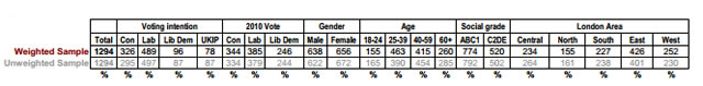 The results were from fieldwork that was teken out between 14 - 17th January 2014. The reults also show an indication as to how each area has voted and intends to vote: