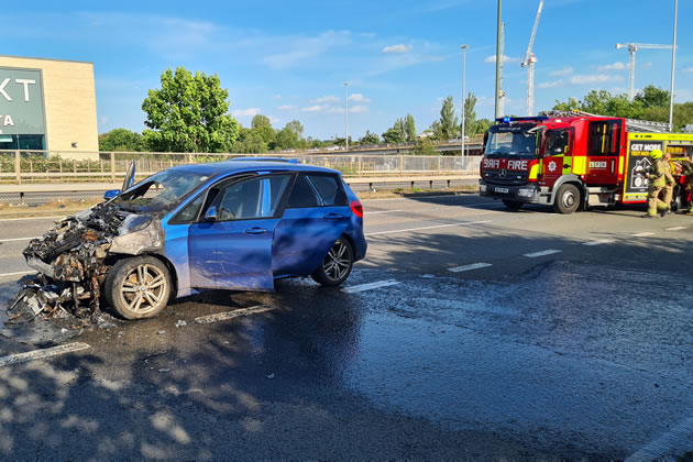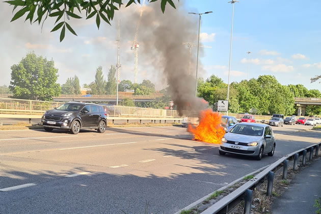 The incident required two of the three lanes of the A3 to be closed for several hours awaiting recovery of the vehicle. Investigations continue into the cause of the fire. “We were very lucky to escape unharmed and avoid a catastrophe” said Susan. “Imagine what could have happened if this had occurred 10 miles earlier when we were in the outside lane travelling through the roadworks at Wisley. Multi vehicle pile-up and serious injuries to ourselves and others, probably! We are having sleepless nights worrying about this”.
