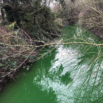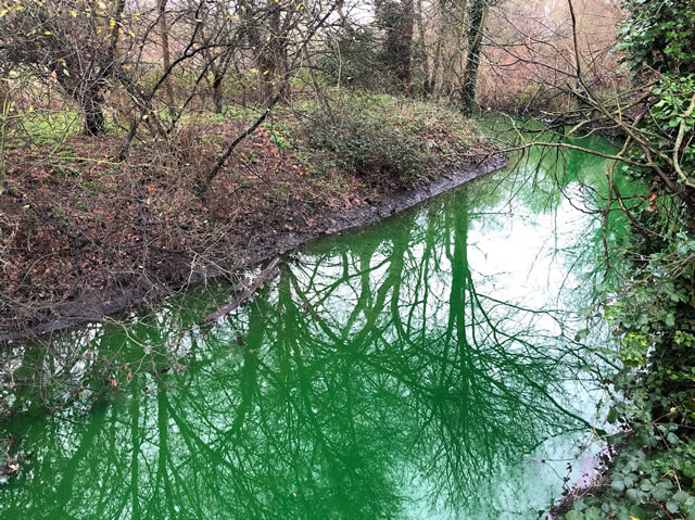 Walkers and runners on Putney Common have been shocked by the colour of Beverley Brook yesterday and it has been reported as still being green today (31st December).