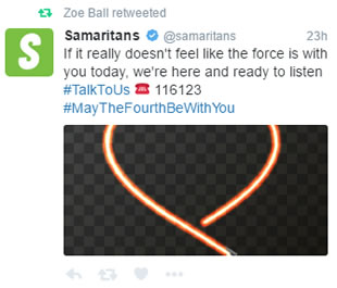 Earlier in the day Zoe Ball had retweeted one of the Samaritans tweets: