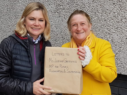 Justine Greening Mp receives her letters from Helen Rennie-Smith