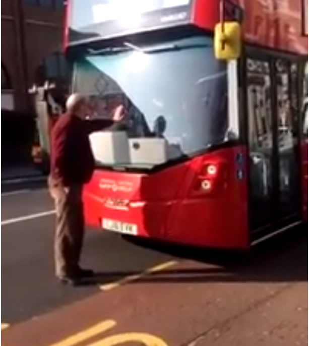 A man brought traffic to a standstill in Putney this Tuesday (28 March) in what is believed to be a protest over temporary relocation of a bus stop. According to Declan Wyatt, who filmed the incident, the man stood in front of a bus to ensure that it stopped. He told the Evening Standard, 'Rather than walking up to the bus stop, the man decided to stand in road and make sure that the 85 bus stopped at this stop, where it was not meant to. The driver refused to let him on, and therefore the man protested by standing in front of the bus so it could not move.’ The standoff carried on for 20 minutes until the driver of the bus rang the police in frustration. He was not arrested. The man is believed to have been protesting about the relocation of the stop outside Putney Rail station which has been moved due to the repair works. He was heard saying that the closure meant that he had to walk half a mile to the next stop. The protest led to traffic jams on the High Street and around the South Circular.