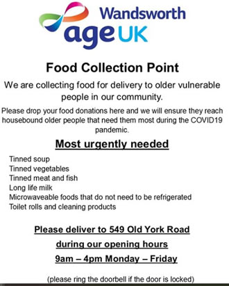 Wandsworth Age UK is looking for donations to distribute to local elderly residents:
