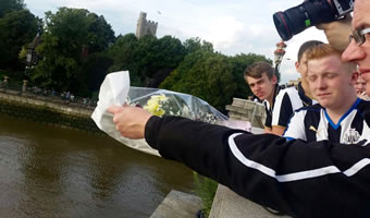 Newcastle United fans travelled to Fulham for the opening match of the new season last Friday night (5th August) stopping on Putney Bridge before the match to pay tribute to the Geordie rowing hero Harry Clasper.