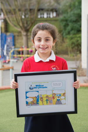 Nine year old Emma, drew the comic strip which was chosen as runner up by three judges, including Nigel Parkinson, artist at world famous comic, The Beano. In addition Emma won the school a tablet and for herself an ipad and her very own Wilbur.