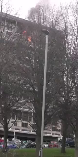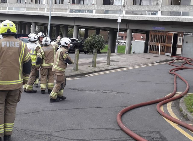 Six fire engines and around 40 firefighters were called at 2.35pm today (21 february) to a fire at a maisonette on Highcliffe Drive in Roehampton. It took less than an hour for the teams to get the blaze in a five-roomed maisonette on the fourth and fifth floor of a six-storey block under control. Fire crews from Wandsworth, Hammersmith, Fulham, Chiswick, Chelsea and Wimbledon fire stations were at the scene. London Fire Brigade say that the cause of fire is not known at this stage.