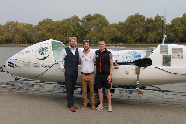 Ocean Brothers Greg & Jude - who are rowing the Atlantic Ocean in January 2018 to raise £100,000 for the British Skin Foundation's skin cancer research in memory of their father Peter Massey -started their next phase of training for their epic voyage from Putney Embankment this week. 3 x Olympic Gold Rower Andrew Triggs-Hodge stopped by on Monday (16 October) to voice his support and pss on tips: ""Good luck Greg & Jude and congrats on taking on such an epic challenge! I hope in every way it is a success, both in raising money for skin cancer research and awareness of such an important cause."