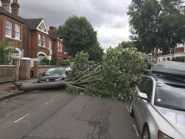 A fallen tree on Clarendon Drive in Putney has caused some traffic jams in the local area this Wednesday morning. The tree appears to have narrowly avoided nearby parked cars and there are no reports of anyone being injured. Wandsworth parks department were notified of the fall and came that afternoon to remove the tree. As a result of inspections two further trees were removed. It is not known at this stage whether they will be replaced. The immediate cause of the tree falling is not know - there was some wind in Putney around the time but speeds didn't rise much above 10mph according to the Met Office. Traffic problems had already occurred in the Putney area the same morning due to a collision on the Upper Richmond Road near the junction with Putney High Street leading to a diversion up Putney Hill. This road has now re-opened.