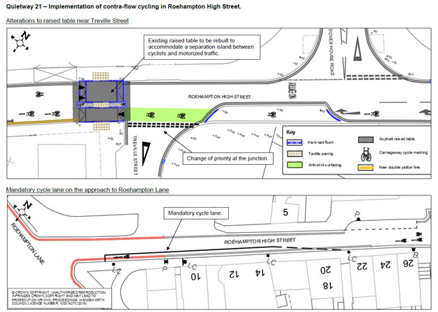 Works are about to get underway on 18th March, that will enable cyclists to take a short cut along Roehampton High Street. The cycling contraflow scheme is being introduced in the high street which will allow cyclists to travel in both directions along this quiet one-way street. It will apply in Roehampton High Street from its junction with Dover House Road to Roehampton Lane. The route will form part of Transport for London’s Quietway 21 (Q21) which links Wandsworth Common to Teddington. Additional signage and carriageway markings will be introduced along with a mandatory cycle lane on the approach to Roehampton Lane. The works are epxected to take two weeks. The decision to proceed with the scheme follows positive feedback from a public consultation and successful pilot schemes in other parts of the borough. Transport spokesman Cllr Jonathan Cook said: “This scheme is part of a wider package of measures designed to encourage people to take to two wheeled travel. There are clear and obvious health and air quality benefits if we can get more residents to take up this non-polluting form of transport. “Introducing convenient short-cuts for cyclists on quieter roads with low traffic volumes is just one of the ways we are encouraging higher levels of bike travel in the borough.” For more information about support for cycling in Wandsworth visit www.wandsworth.gov.uk/cycling. March 14, 2019 |