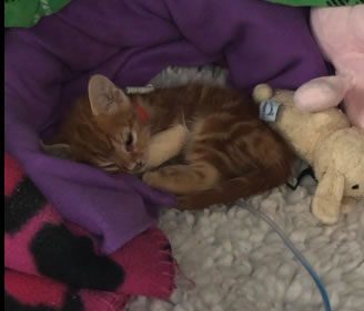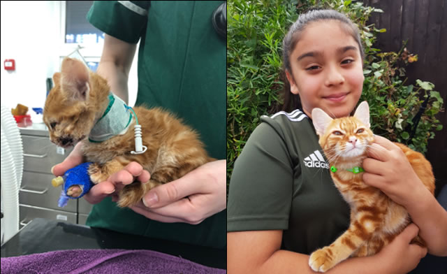 Zoey, the eight-month-old ginger kitten, came into the care of RSPCA Putney Animal Hospital in London in March after she was sadly bitten by a dog in her previous home. It took weeks of surgery and rehabilitation, including a wire which was put in place to hold her jaw together, to get her back on her paws. After her treatment at the hospital, she was then transferred to RSPCA Southall but poor Zoey wasn’t out of the woods yet. She had to wait for the wire in her jaw to be removed once her face had healed properly. The kitten survivor, who was originally named Boudicca after a Roman warrior princess, was then rehomed from RSPCA Southall Cattery in April to Taig and Angila Drummond and their children Ava, 10 and Jaden, 13. Taig, who lives in Ashford in Middlesex with his family and their cats, said: “Literally as soon as we saw Zoey, we just fell in love with her straight away. After everything she has been through, I thought she would be timid and frail but she’s the opposite. She’s very independent and completely fearless - she chases around our other cat and he’s probably about three times the size of her. “She is a great testament to the work of the RSPCA. She was completely wrecked when she came in. It’s unbelievable the damage she had and you wouldn’t know looking at her now, you wouldn’t think anything had happened to her.” Taig also rehomed his five-year-old cat Ronnie from RSPCA Southall previously and adopted Zoey as a friend for him, as well as for him and his family. He added: “She’s well and truly settled in now. My daughter loves her and although she chases Ronnie, they will play together and groom each other sometimes so I think they are starting to get along.” Joanne Elmes, RSPCA Putney hospital administrator, explained that Zoey showed resilience from the start. Just three weeks after coming into the hospital, she was already running around the ward as though determined to make up for the playtime she had missed out on. “This poor kitten was close to death and in a bad way when she came into the care of the hospital. She had fractures in her bottom jaw and her cheekbone as well as a bleeding eye. She was placed in an intensive care unit cage to recover. Pretty much all of her head, face and neck were affected so she must have been in a lot of pain. After a lot of care, she finally pulled through and thankfully didn’t show any signs of long-term damage. “We were so worried she wouldn’t make it but then all of a sudden she started to get better and she was determined to run around the ward and just be a normal kitten. It truly is amazing. She is such a special little survivor.” To help the RSPCA continue rescuing, rehabilitating and rehoming animals in desperate need of care please visit their website.