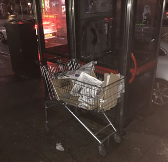 Left in a shopping trolley covered in newspapers and cardboard in Kensington High St