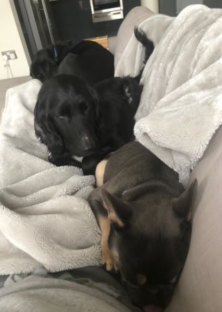 Maisie is now being fostered by Volunteering Coordinator Kirsty Wilkinson who has welcomed Maisie into the family whilst she recovers during the Coronavirus lockdown. Kirsty said: “She is a gorgeous, lovely dog but she has clearly been through a terrible time as she can be very nervous and wouldn’t let me out of her sight at first. She’s started to build her weight back up and her confidence. She loves snuggling on the sofa and has already got used to living with my own dogs, Hugo, a one-eyed French bulldog, who was also abandoned and treated at Putney, and Scampi, who we rehomed from Guide Dogs for the Blind due to medical reasons. Maisie is looking more relaxed and her confidence improves day by day. It’s brilliant to see her come out of her shell and get back to full health after all she has been through.”
