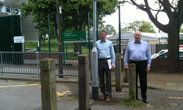 Cllrs Jeremy Ambache & Peter Carpenter outside the Alton Primary School
