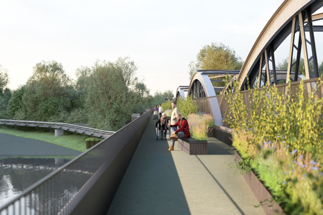 Moxon’s new designs will be fully accessible with ramps and stairs connecting to the bridge walkway. On the Chiswick side this will run from Dan Mason Drive near the Dukes Hollow Nature reserve and there will be easy access approaching from the east or the west of the railway line. From Barnes side of the river a ramp from the bridge will provide access. Stairs will run alongside the existing path, Long Walk, and take visitors up to the level of The View For anyone not wishing to use the ramp. The existing stairs to the train station platform will be replaced with more user-friendly steps and there will be step-free access to and from the rail platform for rail users coming from London to Barnes Bridge.
