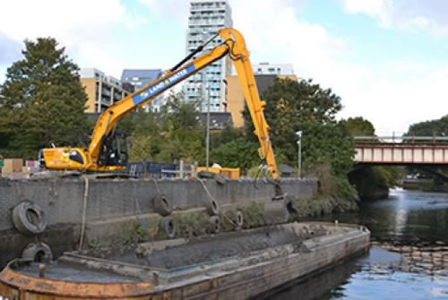 Silt and sediment being removed from the river bed