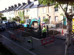 When a hole unexpectedly appeared in Sefton Street, residents were initially relieved when Thames Water appeared. The hole was enlarged and deepened to access the broken sewer pipe and a metal sheet was left covering it ensuring residents could pass over on foot or by car safely.