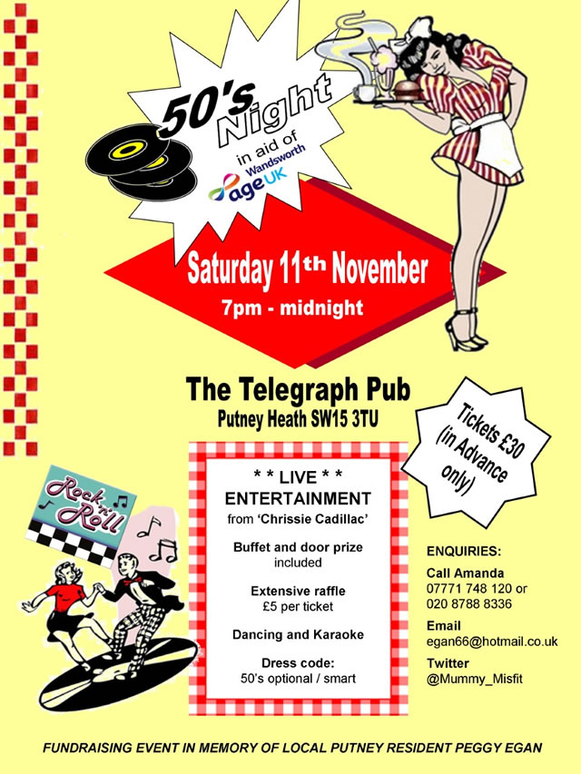 Have a great night while raising money for Age UK, Wandsworth in memory of Putney resident Peggy Egan.