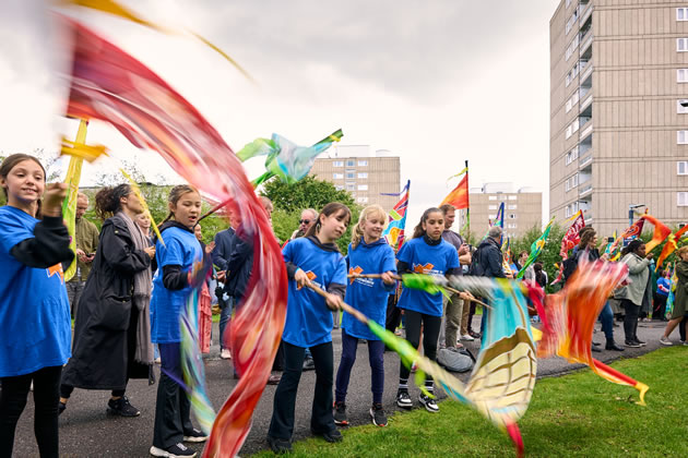 The procession, which included over 100 local participants each with a flag, moved through Roehampton’s streets, pausing at heritage sites for dance and martial arts performances. It concluded with a finale on Bull Green. Performers carried hand-painted silk flags created in both India and the UK, and the event was accompanied by an original six-part musical composition by Rob Blake. The score followed a narrative arc representing stages of human development, from childhood through to transformation and triumph. In addition to the parade, the weekend saw the installation of The Four Seasons, a new mural at Roehampton Library. Designed by artist Adalberto Lonardi and curated by Emergency Exit Arts, the artwork was co-created with local residents and reflects seasonal changes and community-led improvements in the Alton area. The mural forms part of the council’s Alton Renewal Plan.