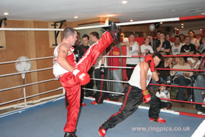 Photo courtesey of www.ringpics.co.uk Gavin Emerson in action above said, “I was really under pressure out there but the training paid off. It was tough taking on so many fighters and adapting to their different styles and levels of skill. The next challenge is to survive the celebrations tonight! “I feel fortunate to be able to use my skills in a positive way to raise money for the Empire Schizophrenia Trust and in particular, those suffering from mental health problems who are often misunderstood or completely ignored. Mark Winter, Senior Instructor at Martial Fitness Putney, has been assisting Gavin with his training regime, he says, “Gavin had a tough time in the ring, but he has an exceptional level of mental and physical ability. This is a unique achievement and we are really proud of him.” |