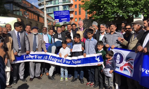 Saddened and shocked by the terrorist actions at London Bridge & Borough Market on Saturday (3 June) the Ahmadiyya Muslim Community Elders Association organised a solidarity event at Church Square.