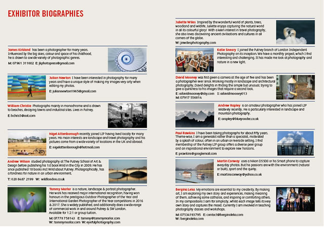 This exhibition is proudly presented by the Putney satellite group of London Independent Photography, a community organisation for amateur and professional photographers with over 400 members.