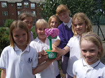 The EC allocated 'carbon points' to the girls when they carried out simple energy saving tasks, such as having a short shower rather than a bath, walking to schools and turning electrical appliances off standby. At the end of the week the team with the most points were presented with a recycled Carbon Cup by the school Environmental Council (pictured right).