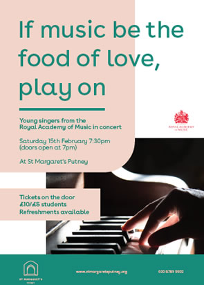 Following on from last summer’s wonderful concert St Margaret's Church are hosting the Royal Academy of Music for another recital evening from young singers at St Margaret’s Church, Putney Park Lane, SW15 5HU from 7pm - 9.30pm on Saturday 15 February. Tickets at the office or on the door: £10/£5 students.