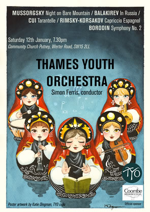 Thames Youth Orchestra brings together musicians from across South WestLondon to play a high quality, challenging orchestral repertoire. This week's concert features many of the great Russian composers of the nineteenth century - Balakirev, Mussorgsky, Rimsky-Korsakov, Cui and Borodin. It takes place at the Community Church Putney, Werter Road SW15 2LL on Saturday 12 January from 7.30pm to 9.30pm. January 10, 2019 |