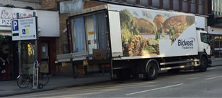 Businesses continue to disregard day time ban from Putney High Street Today (Thursday 28th) Tesco was yet again one of many companies continuing to flout a ban on daytime deliveries on Putney High Street. Putney residents are becoming eagle eyed at playing 'Spot the delivery truck', taking snaps on deliveries taking place. It is becoming obvious the fine is not high enough to be a deterrent as it would be cheaper than paying for overtime or early/late hour delivery charges. A Petit Forestier vehicle outside the Railway (above). The photographer commented,"Although it was not clear whether it was actually making any deliveries. But it was certainly parked very badly, on the wrong side of the road, and how it managed to negotiate the traffic-lights from that position….!"
