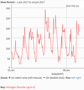 Researchers from King's College London has released figures showing that air pollution limits have now breached the annual limit for 2017 - one day later than in 2016. Under EU rules the limit is not supposed to be exceeded more than 18 times in a year - the regulations are that the hourly upper limit for NO2 is 200 micrograms per cubic metre. January 9, 2017 |