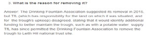 Through a Freedom of Information (FoI) request the Council informed Alton Regeneration Watch that the DFA recommended the removal of the trough but TfL refused with the promise of funding to restore the trough - however TfL then permitted the removal by DFA: