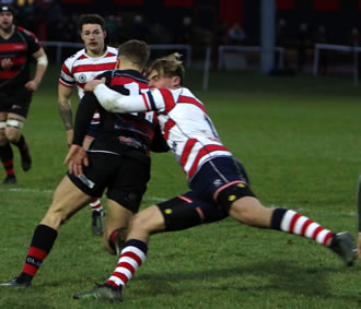 These two old South London rivals eventually fought each other to a draw in a tense Local Derby – and although Park could easily have won at the death, the draw was the fairest result. Rosslyn Park had more of the early play, but it was the home side who took the lead on 11 minutes, winger Leo Fielding slotting over a penalty for 3-0. Given a penalty of their own, Park attempted to run the ball but it didn’t work out and it was Blackheath, now shading the play, who found a way to the line, Fielding slicing through the middle to score and then converting his own effort for 10-0 on 19 minutes. Park came roaring back through left winger James Hassell-Collins who scored in the corner, allowing Harry Leonard to display his consummate kicking skills in nailing the wide conversion for 10-7 on 29 minutes. Blackheath came back and won a penalty that saw Park prop Maurice Nwakor sent to the bin for 10 minutes, but this time Fielding’s kick missed the target. It was Park’s 14 men who came closest to scoring before the interval when a super break by right-winger Rhys Crane had runners in support, but Park lost the ball with the line apparently at their mercy. Park made a strong start to the second half and pressure on the Blackheath defence yielded a penalty for Harry Leonard to tie the scores at 10-10 after 46 minutes of a pulsating match. The home side came back with an immense attack, which drew some superb defensive tackling from Park who weathered the storm to clear. Park then countered and, with numbers out wide and the home defence in retreat, Blackheath full-back Geoff Griffiths’ knock-on was deemed a deliberate action to prevent a try and the Penalty Try was awarded, to put the visitors ahead for the first time at 17-10 with twenty minutes remaining. It was now Blackheath’s turn to ratchet up the pressure to save the match. They won a penalty, which brought a huge groan from the home crowd as it hit the post and bounced out. Eventually the pressure told as Park conceded a Penalty Try to level the scores, and left them a man short for the final nine minutes as Mike Macfarlane trudged to the sin bin. There was still a final twist as it was Park’s fourteen who swept up the field to threaten the home try line. Park did actually get over the line, and claimed to have scored, but such was the pile of bodies that the referee could not possibly see whether or not the ball was grounded. From the five metre scrum, Hugo Ellis did touch down, but the whistle had already gone to re-set the scrum. Eventually Blackheath broke out and the final whistle brought an end to a classic local Derby that neither side would have deserved to lose. Park Head Coach, Kieran Power, said “In some ways we were better but in the end it came down to ill-discipline with three yellow cards. We had the opportunities to win at the end, but just lacked accuracy”. He summed up his side’s performance, “Commitment and passion: brilliant – accuracy: still yet to improve”. Park: Robinson; Crane, Williams, Barnes, Hassel-Collins; Leonard; Crow; Nwakor, Gibson, Maguire; Spivey, Macfarlane; Barnard, Hudson, Ellis. Park can now enjoy a seasonal rest until 6th January when they have another major Local Derby, against Esher at the Rock.