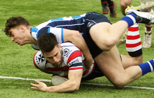 Better was to come with a tremendous break from centre Andrew Henderson five minutes before the interval. When he was finally halted he managed to offload to Hassell-Collins who streaked away to score, Leonard again on target with the conversion for 24-0.