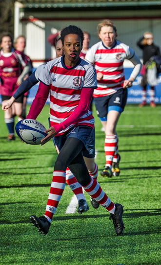 Some shrewd kicking from fly-half Alice Lovett set up a position for winger Sam Emery to go over for the Slingbacks. At that stage Streatham had hardly seen the ball, but when they managed to get it into the hands of their fast and feisty right-winger, she just streaked through potential tacklers to score a try that was converted for a 7-5 lead to the visitors.