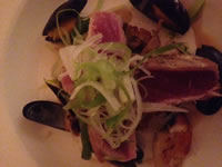 The other side of the table had the seared tuna with crab claw and mussels, served on a coconut rice cake, with wild mushrooms, spring onion and a seafood vinaigrette. The tuna was beautifully presented - how can anyone want tuna cooked through!
